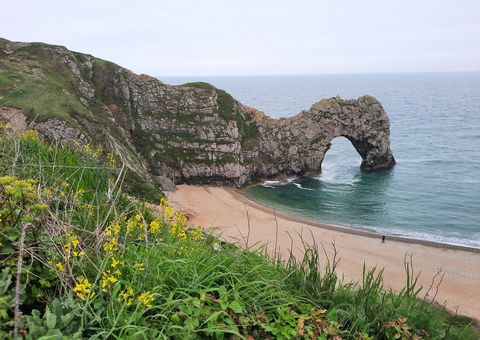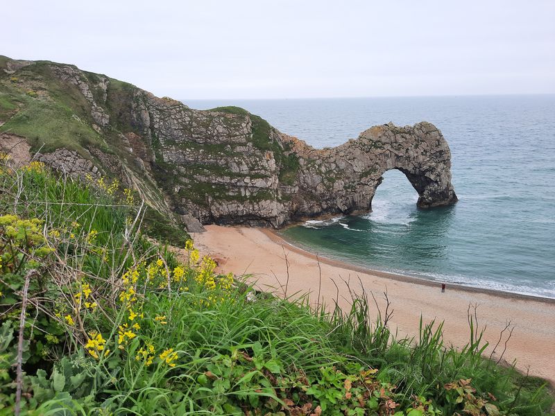 Nach einem sehr guten Buffet-Frühstück steigen wir in unseren Bus, der blitzblank vor dem Hoteleingang auf uns wartet. Wir fahren nach Dorset zum Jurassic Coast, einem Küstenstreifen von ca. 150 km. Wir fangen am Durdle Door an, einem Wahrzeichen dieses UNESCO Weltkulturerbes. Der 60 Meter hohe Felsen entstand, als das Meer vor etwa 10.000 Jahren den Kalkstein durchbohrte. Ab hier laufen wir vier Kilometer lang auf dem längsten Wanderweg Großbritanniens - South West Coast Path - bis zu dem Örtchen Lulworth Cove mit einer beinahe perfekt runden Bucht. Hier wartet unser Bus, der uns zu der Perle von Dorset – Lime Regis – bringt. Der Ort ist weltbekannt, aus Literatur, Film, aber vor allem der Paläontologie, weil ein 10-jähriges Mädchen Mary Anning hier Anfang des 19. Jahrhunderts das erste Skelett eines Ichthyosaurus gefunden und fachmännisch freigelegt hat. Auch heute kann man hier Fossilien finden oder, wenn die Zeit knapp ist, kaufen.