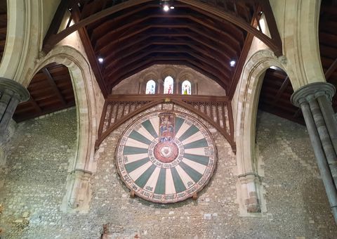 In der Großen Halle des ehemaligen Schlosses hängt die Große Tafel, an der König Artus seine Ritter versammelt haben sollte.