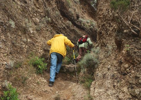 Aber wir sind genau wie die Sportwanderer auf den gleichen Pfaden, den schönsten Wegen der Region unterwegs, also meist draußen in der Natur, oft abseits von gebauten Wegen. Da gibt es immer mal steile Abschnitte, da liegt Geröll herum, manchmal sind die Trampelpfade nass und rutschig oder wir müssen ein Bächlein überqueren.