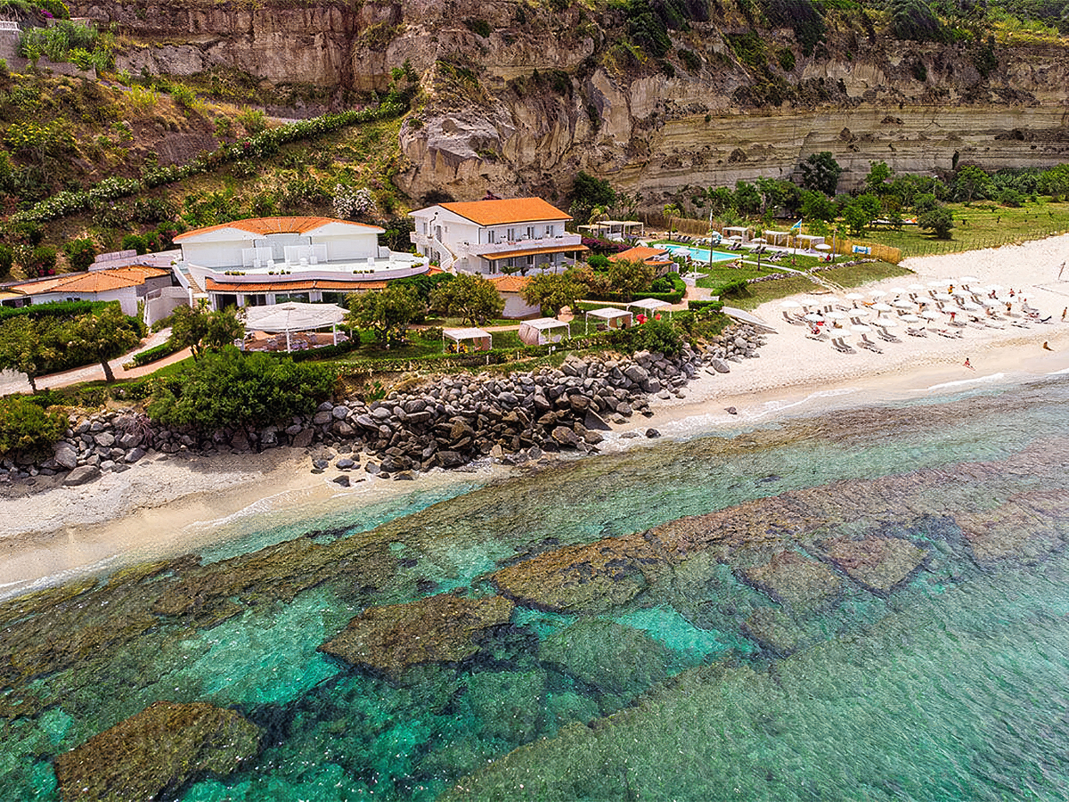 Ausstattung & Lage: Ein kleines Juwel ruhig am Strand von Santa Domenica di Riaci gelegen. Tropea ist ca. 3,5 km entfernt. Im Stil eines Beach Resorts erbaut, findet man hier modernem Komfort. Eingebettet in den Garten befindet sich der schöne Swimmingpool (saisonal, wetterabhängig) direkt am Meer. Liegen und Sonnenschutz sind hier inklusive. Im schönen Garten lässt es sich gut entspannen und die Bar und das Restaurant sorgen für das leibliche Wohl.