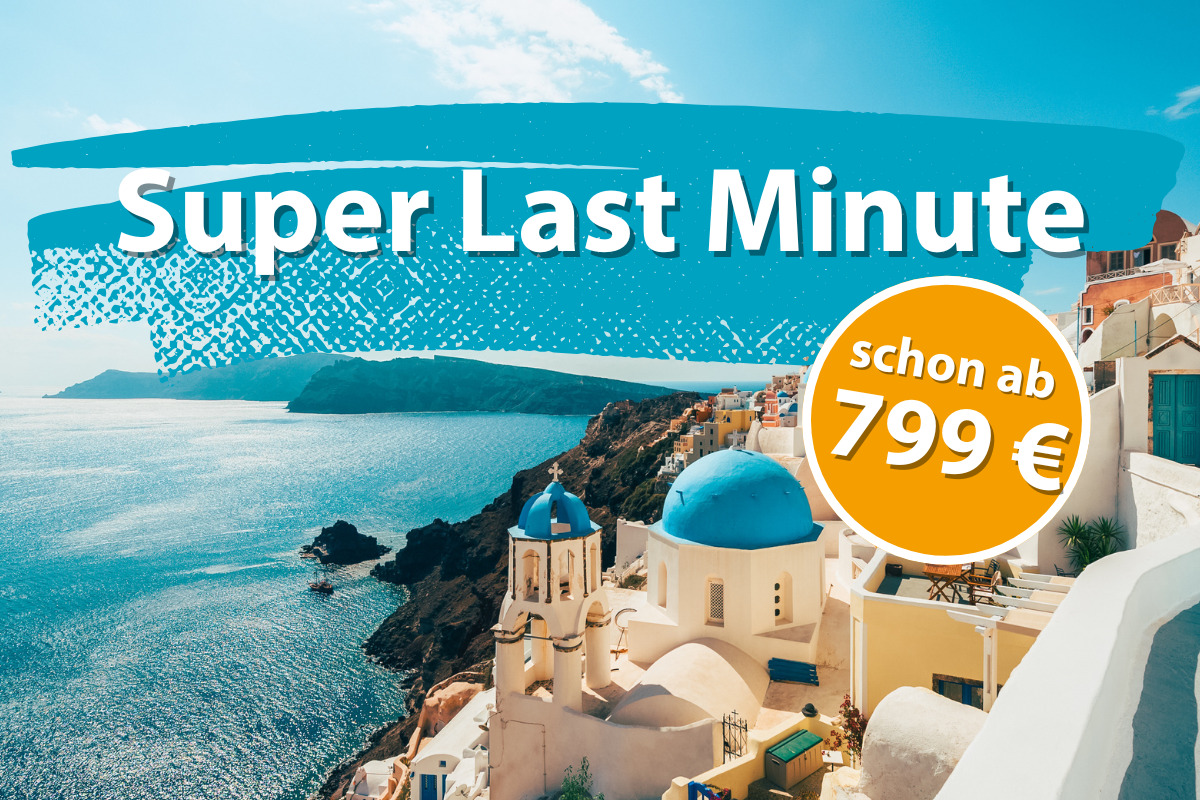 Türkisfarbenes Meer und strahlend blauer Himmel! - Auf der zauberhaften Kykladeninsel Santorin erwarten Sie nicht nur atemberaubende Ausblicke über die rotbraunen Klippen, sondern auch die berühmten weiß getünchten Häuser mit ihren bunten Türen und Fenstern. Santorin verkörpert wie keine andere Insel den Inbegriff von Urlaub in Griechenland. Entdecken Sie neben traumhaften Stränden charmante kleine Städte im typisch griechischen Stil und tauchen ein in die reiche Kultur der Antike.