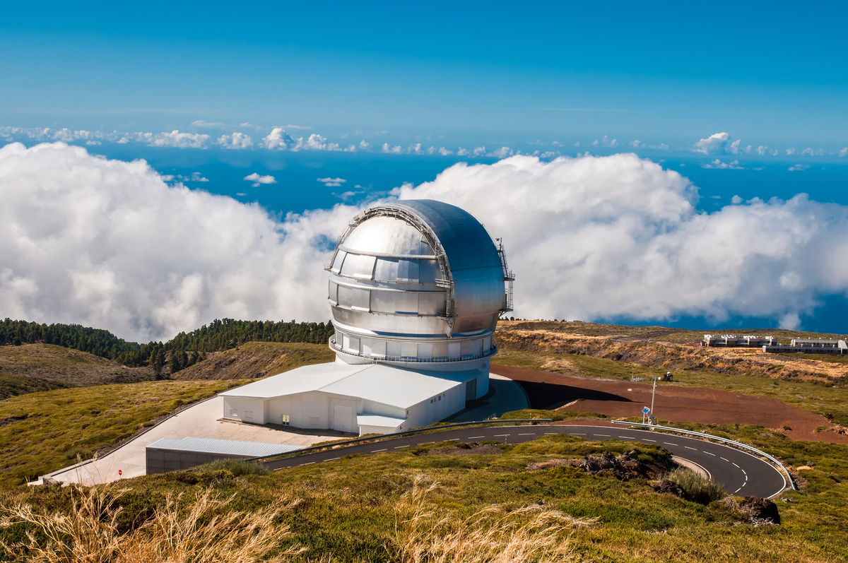 Auf dieser Wanderung stehen wir buchstäblich über allem: Wir beginnen am Roque de Los Muchachos (2.426 m), dem höchsten Punkt La Palmas. Hier thront auch das weltbekannte Astrophysikalische Observatorium, dessen Kuppeln im Sonnenlicht glänzen.