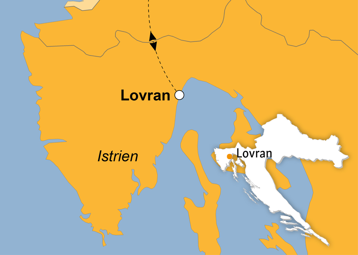 Der Name Lovran leitet sich vom kroatischen Wort für Lorbeer ab und tatsächlich wächst die immergrüne Pflanze hier in Hülle und Fülle. Sie steht sinnbildlich für Ruhe, Beständigkeit und Erneuerung, und wer hier einige Tage verbringt, darf sich sprichwörtlich auf den Lorbeeren ausruhen: Lovran liegt malerisch an der Kvarner Bucht, geschützt vom Učka-Gebirge und umgeben von subtropischer Vegetation. Das milde Klima machte den Ort schon im 19. Jahrhundert zu einem beliebten Luftkurort. Heute begeistert Lovran mit seinem charmanten Altstadtkern, schmalen Steingassen und kleinen Cafés, in denen die Zeit gemächlich zu vergehen scheint.