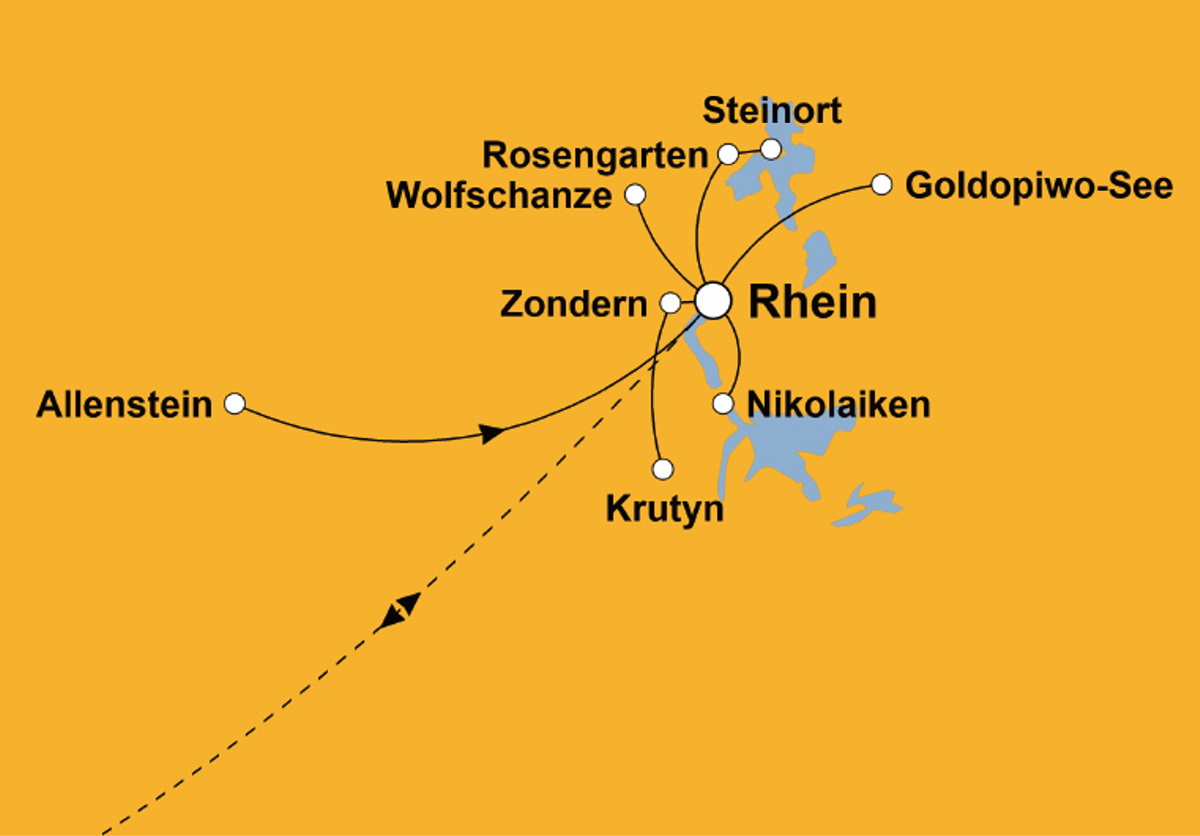 Genießen Sie heute eine freien Tag in Ihrem bezaubernden Urlaubsörtchen Rhein (Ryn) oder begleiten Sie uns auf einen Ausflug zur Wolfsschanze mit anschließender Schifffahrt und Mittagessen (fakultativ buchbar).