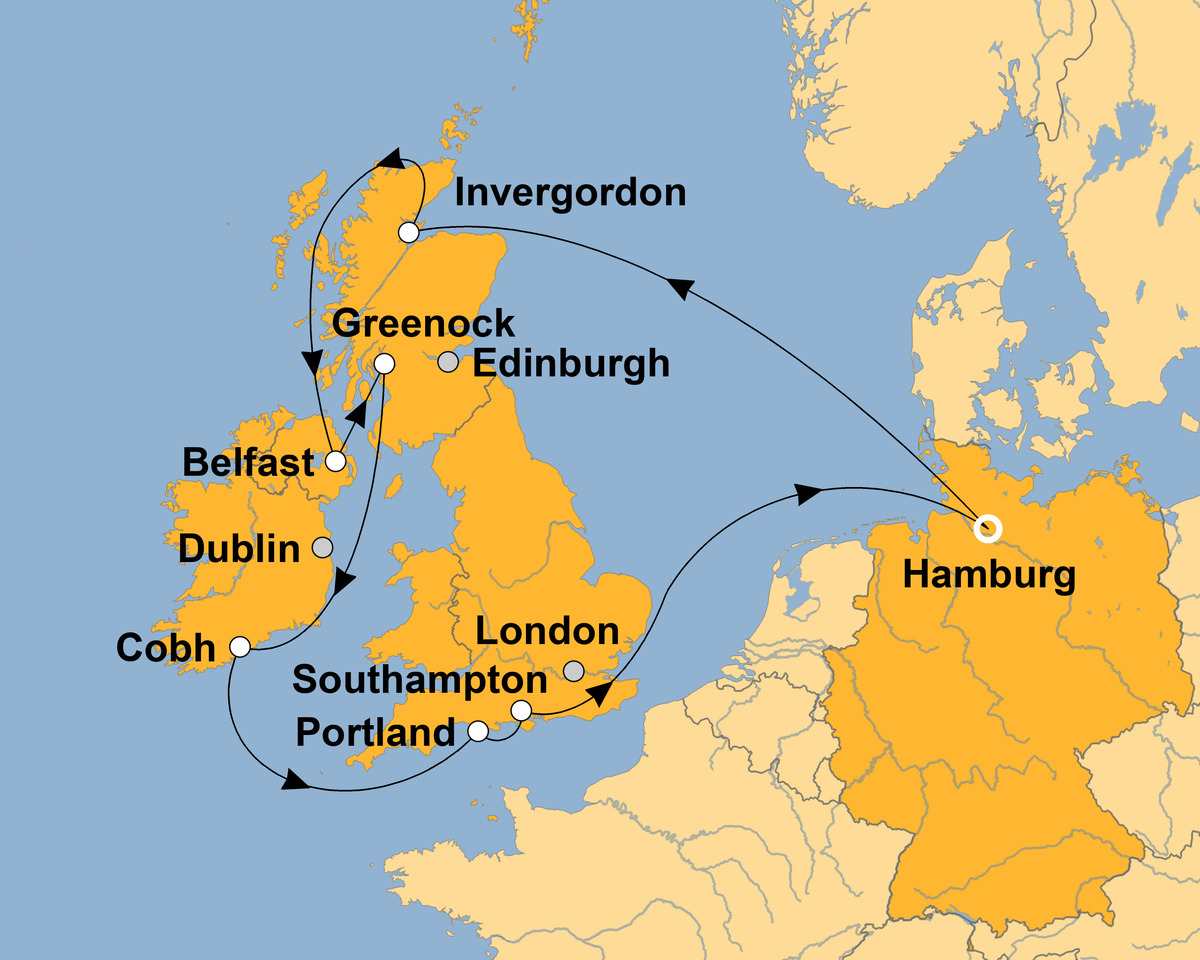 Diese Kreuzfahrt führt Sie mit unseren abwechslungsreichen Landausflügen in die Metropolen wie die britische Hauptstadt London, ins schottische Edinburgh, in die nordirische Hauptstadt Belfast und nach Dublin, in die Hauptstadt Irlands. Sie erleben den zauberhaften Süden der grünen Insel Irland und Südengland mit all seiner Schönheit. Herzlich Willkommen an Bord von MEIN SCHIFF 2.