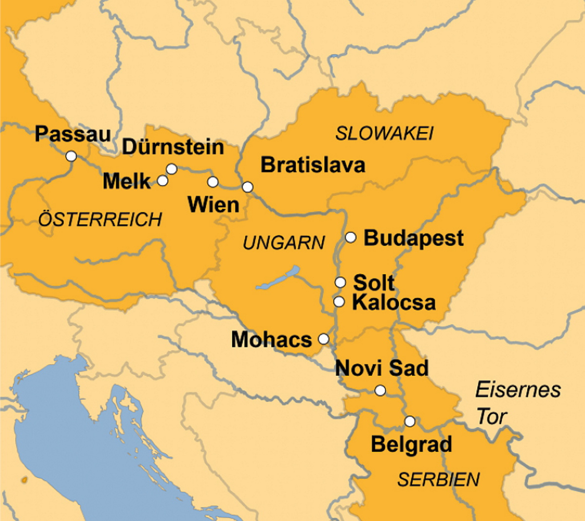 Passau - Schlögener Schlinge - Wien - Budapest - Belgrad - "Eisernes Tor" - Bratislava - Melk - Passau